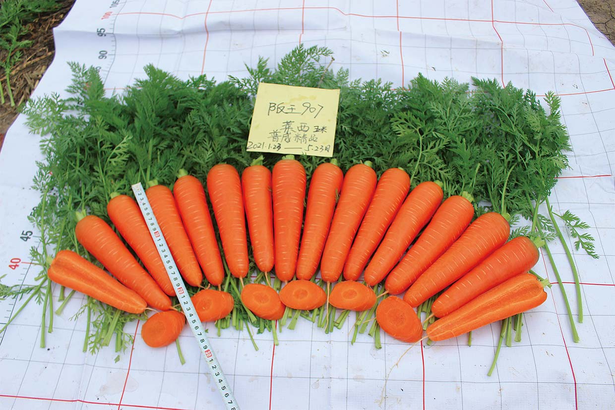 最新耐抽薹品种,2-10m大棚适宜温度下均可种植,长度21cm左右,收尾早,膨大较快,颜色红,成品率高。山东青岛地区为较适宜种植区域。